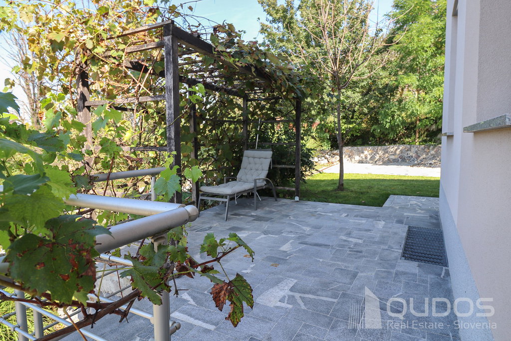 Ob hiši se nahaja tudi vinska klet izdelana iz naravnega kamna. Za hišo je lesen nadstrešek namenjen druženju in kamin. Pred in za hišo je dovolj velika zelenica, katero lahko uporabite bodisi za vrtnarjenje bodisi za otroško igro.