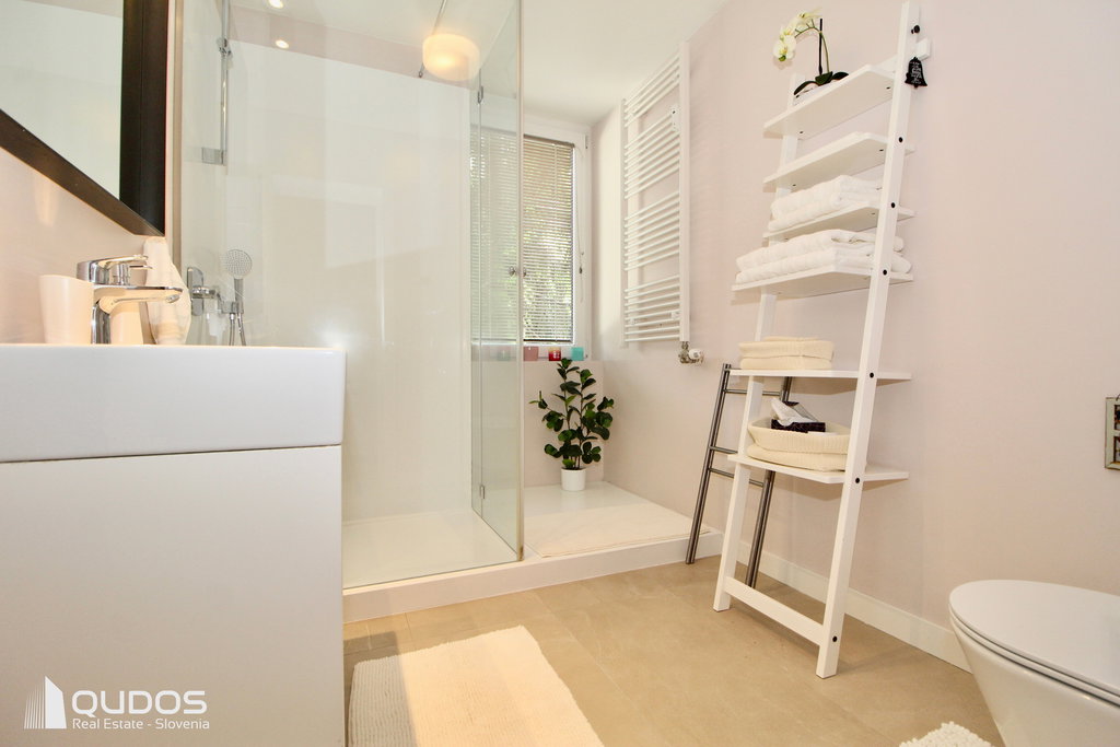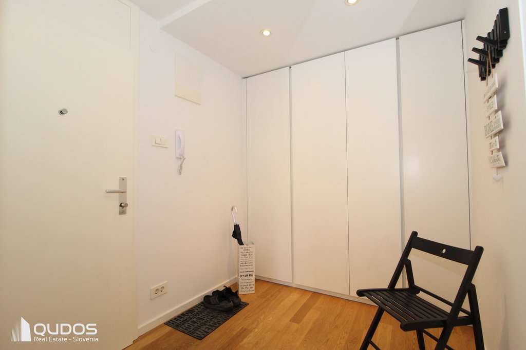 Obsega predprostor, velik in odprt dnevnobivalni del s kuhinjo, ločeno spalnico ter kopalnico. Orientirano je na J in S. Opremljeno je tudi s klimatsko napravo, ki poleti poskrbi za prijetno temperaturo. Je vmesno stanovanje, kar pomeni, da so tudi mesečni stroški posledično nižji.
