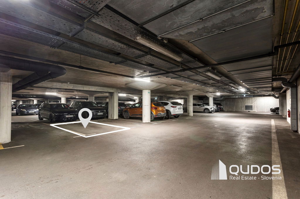 Stanovanju pripada tudi parkirno mesto v garaži pod objektom in prostorna klet. Za prebivalce so na voljo tudi kolesarnica in sušilnica, gostje pa lahko parkirajo na urejenem parkirušču pred zgradbo (prvih 30 min brezplačno).