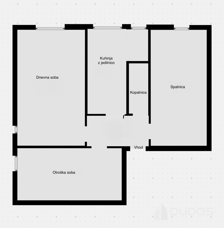 Funkcionalen tloris obsega predprostor z vgradnimi omarami, dve spalnici, dnevno sobo, kuhinjo z jedilnico ter kopalnico. Prostori so svetli in prostorni.