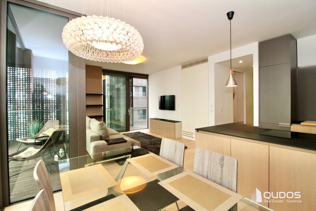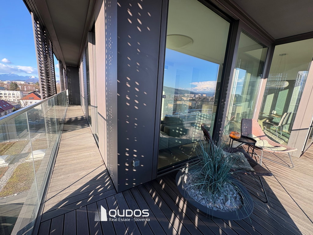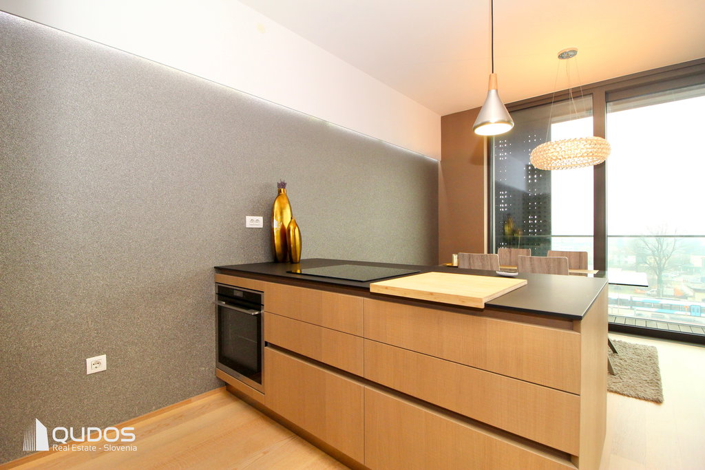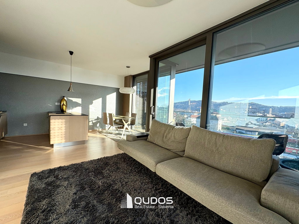 Razkošno trisobno stanovanje s pogledom na grad in parkirnim mestom v podzemni garaži.