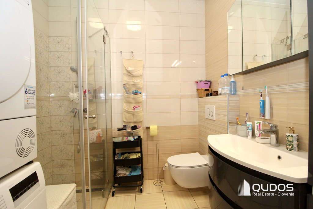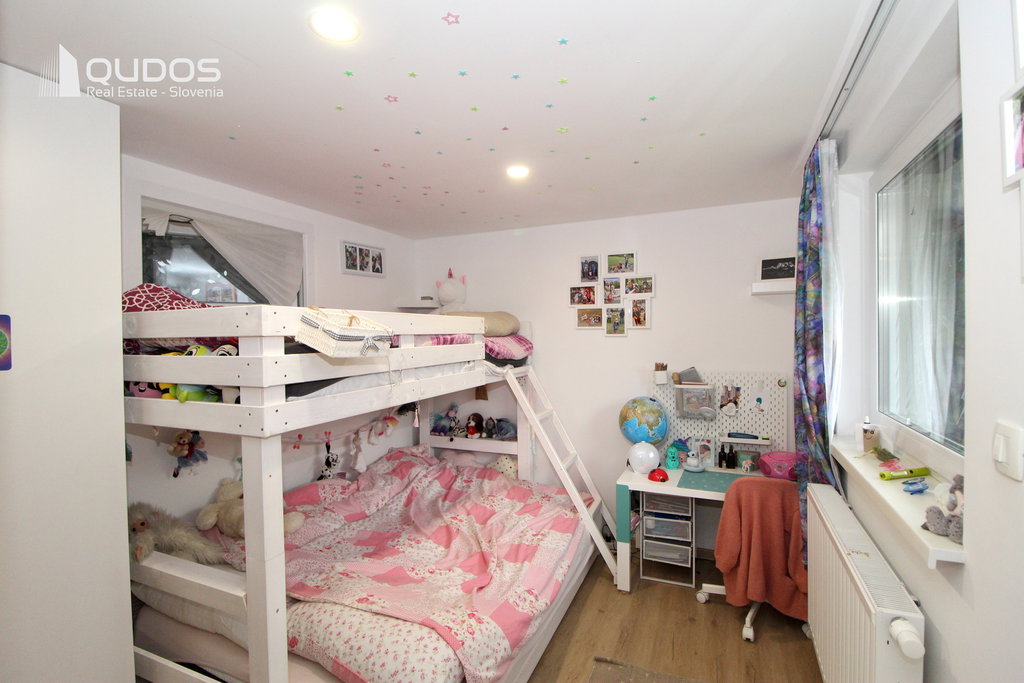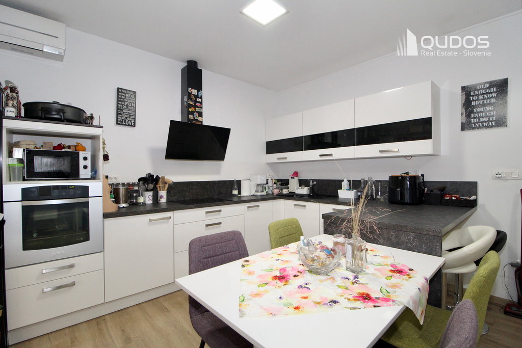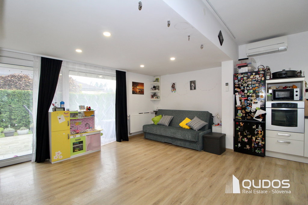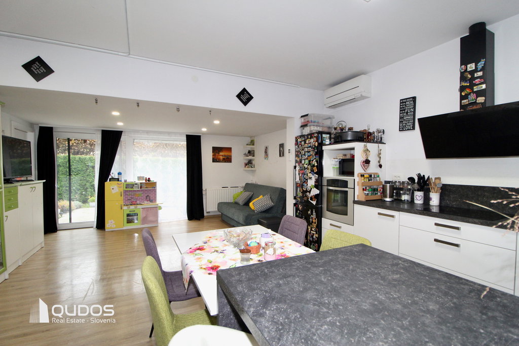 Stanovanje je v celoti obnovljeno in se prodaja opremljeno, kar omogoča takojšnjo vselitev brez dodatnih vlaganj. Prostor je funkcionalno zasnovan in svetel. Obsega predsobo, dnevno-bivalni prostor s kuhinjo in jedilnico, dve spalnici ter kopalnico. Iz dnevnega prostora je izhod na prostoren atrij (55 m2), ki nudi popolno zasebnost in možnost sporostitve na prostem.