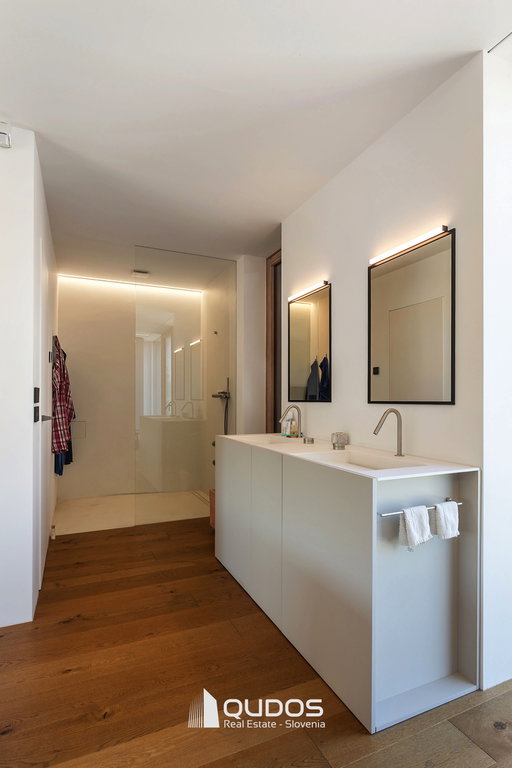 glavna spalnica (27 m²) z integrirano kopalnico (8 m²) in ločenim WC-jem,
