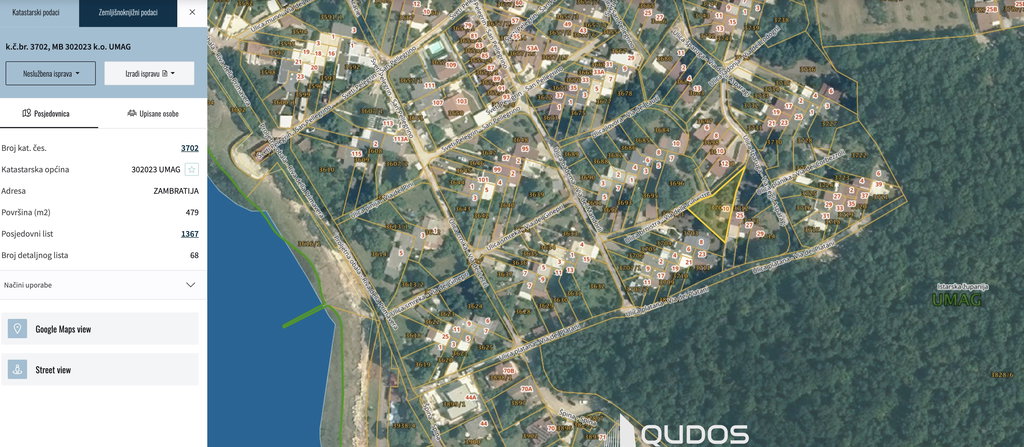 Parcela je končna, na njej stoji hiša iz leta 1966. Je trikotne oblike in je obdana z živo mejo.