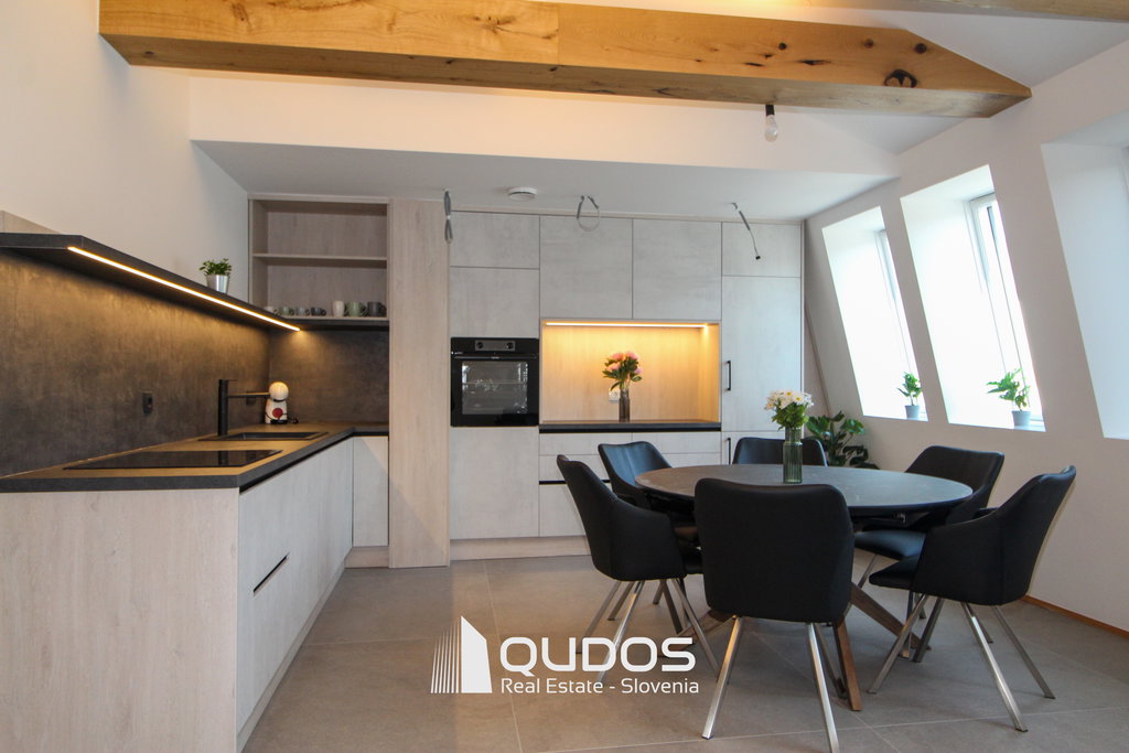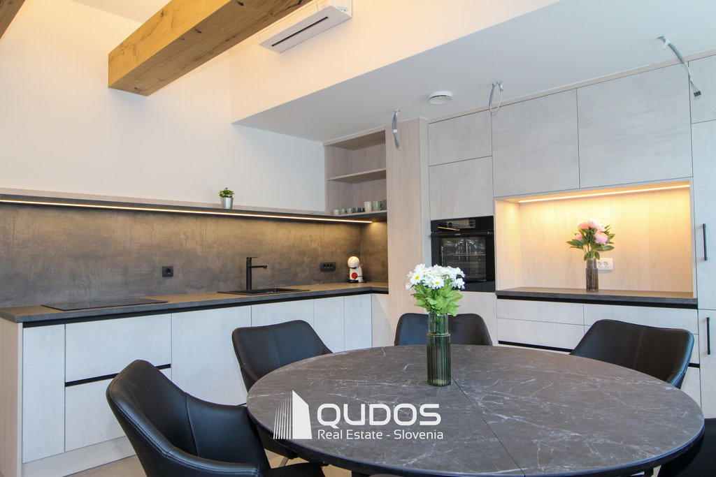 Prostor je opremljen s pohištvom visoke kakovosti, izdelanim po meri, ter vključuje vso osnovno opremo in gospodinjske pripomočke, zato je možna takojšnja uporaba brez dodatnih vlaganj.