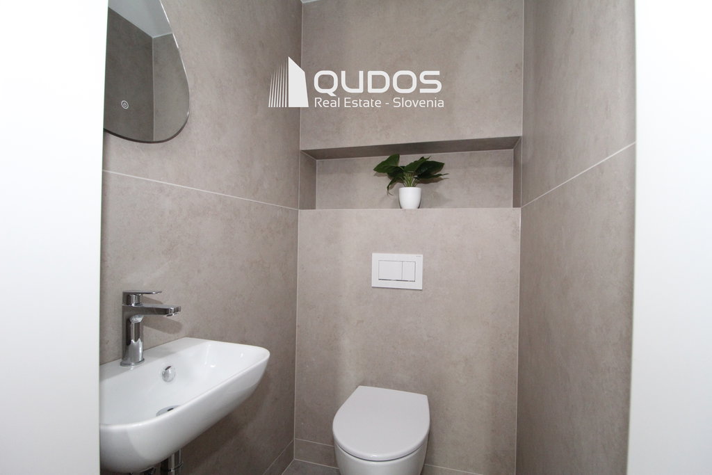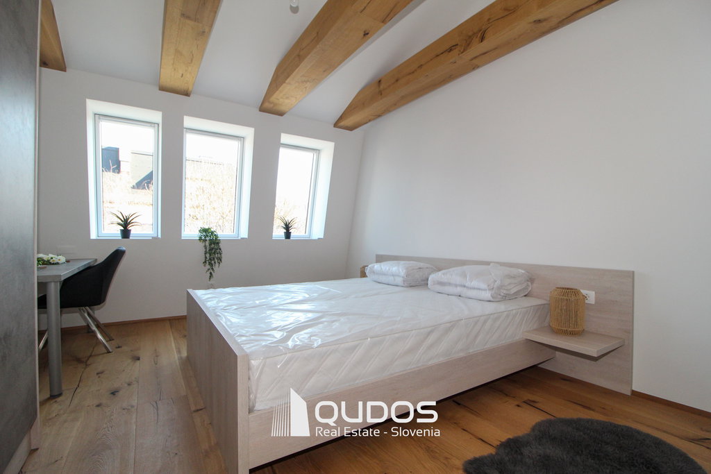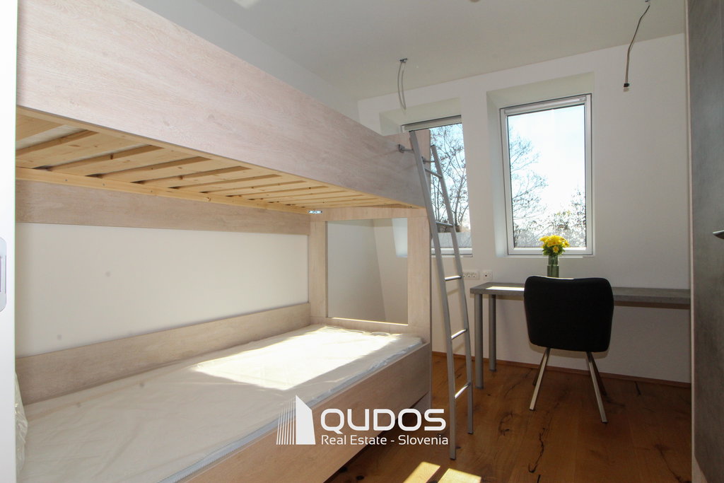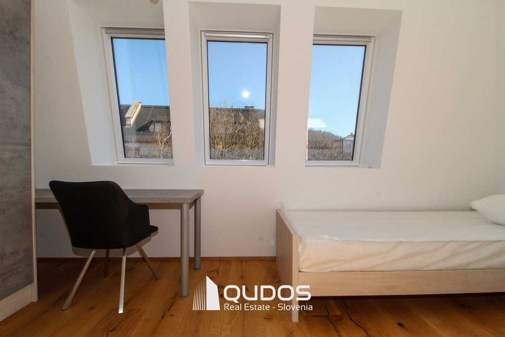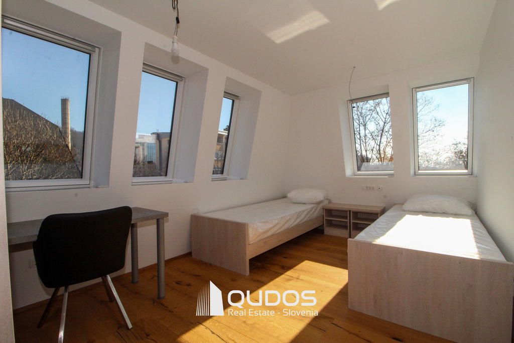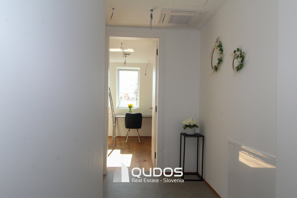 V poslovni stavbi se oddaja prostoren in kakovostno izdelan 4-sobni poslovni apartma (3 spalnice) v skupni izmeri 120 m². Apartma še ni bil vseljen in je pripravljen za prvo uporabo.