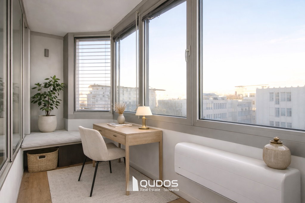Izvrstna lokacija v neposredni bližini centra mesta, odličen tloris, velike steklene površine in veliko dnevne svetlobe ter dostop na balkon iz obeh sob so prednosti, ki jih ne gre spregledati. Veselim se vašega klica, Maria 041 777 110.