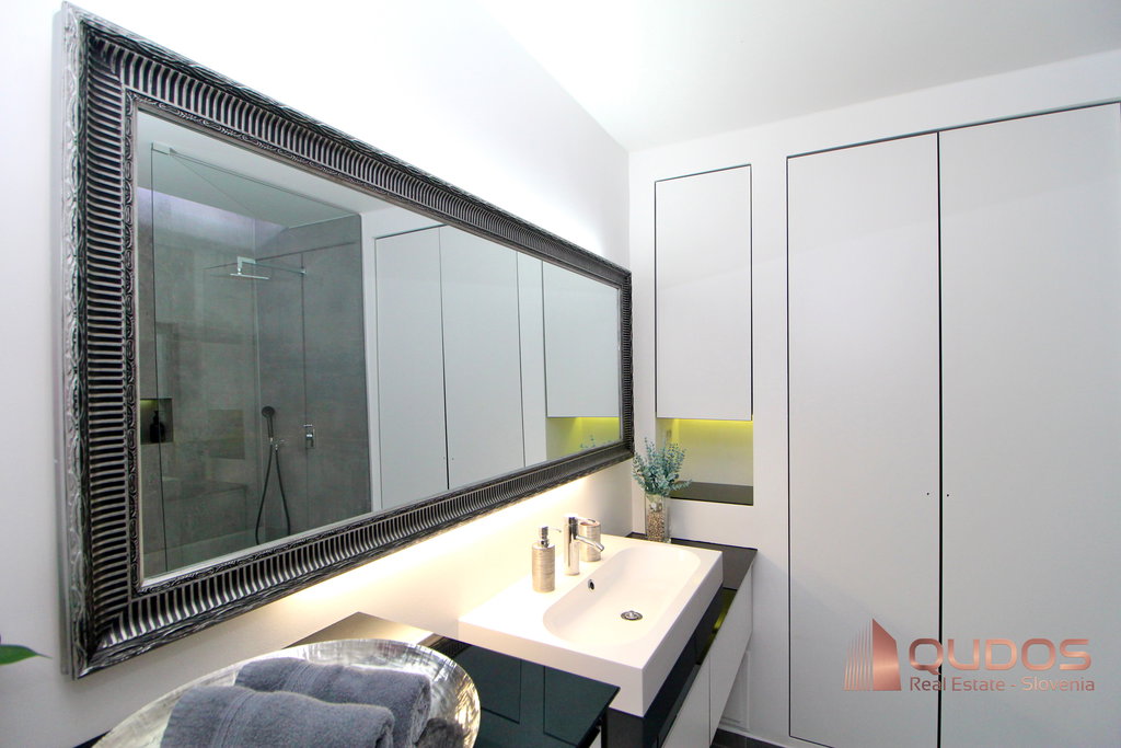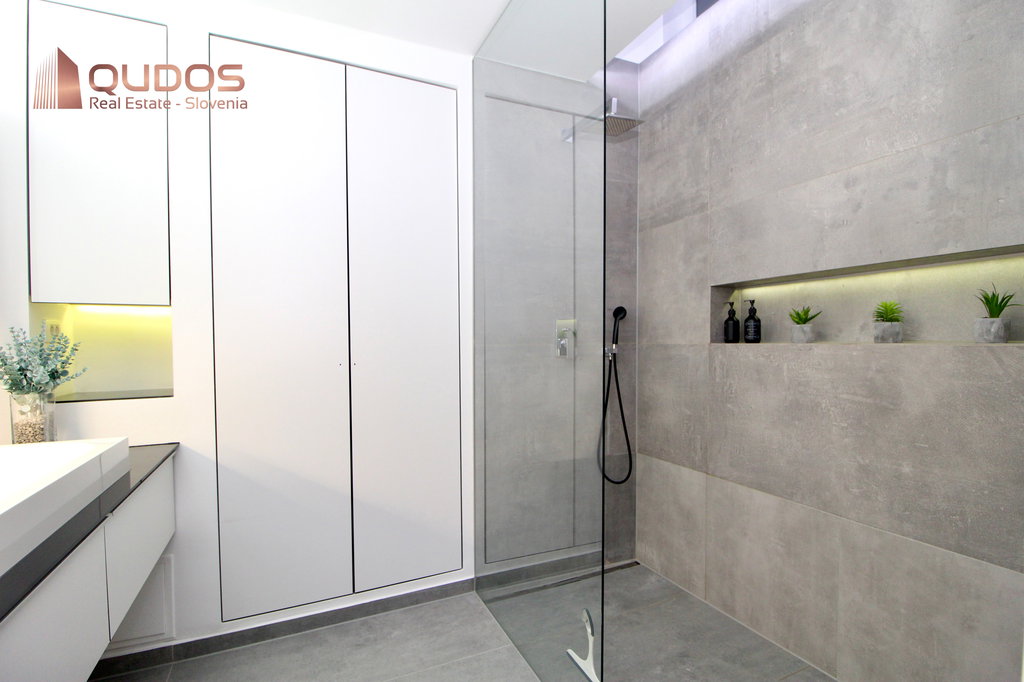 Stanovanje obsega izjemno prostoren dnevno-bivalni prostor s kuhinjo in jedilnim delom, spalnico ter kopalnico s talnim gretjem.