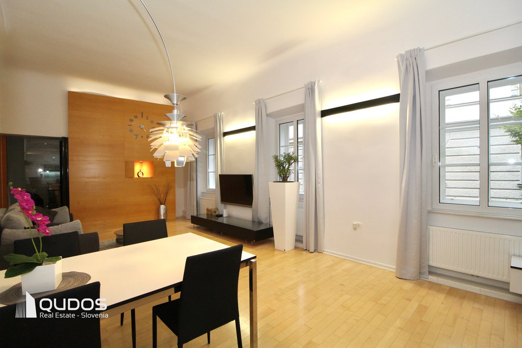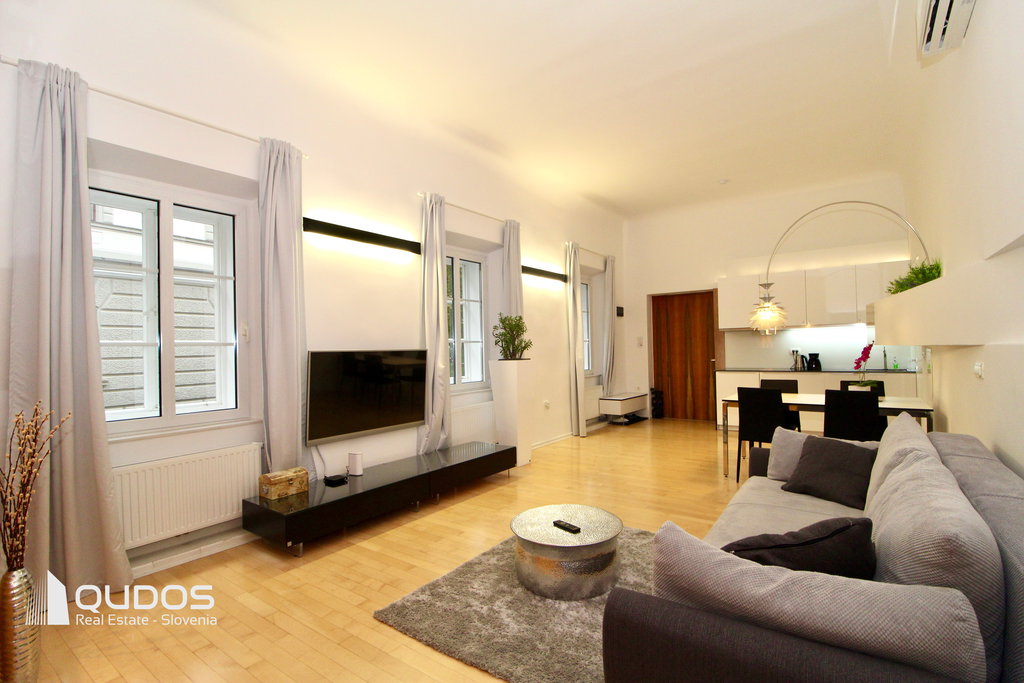 Krasijo ga visoki stropi, zelo veliko dnevne svetlobe in izjemna prostornost ter seveda skrbno izbrana notranja oprema, ki združuje eleganco preteklosti ter udobje sodobnega bivanja. V stanovanju je tudi optični internetni priključek in je pripravljeno, da postane začasni dom najemniku.