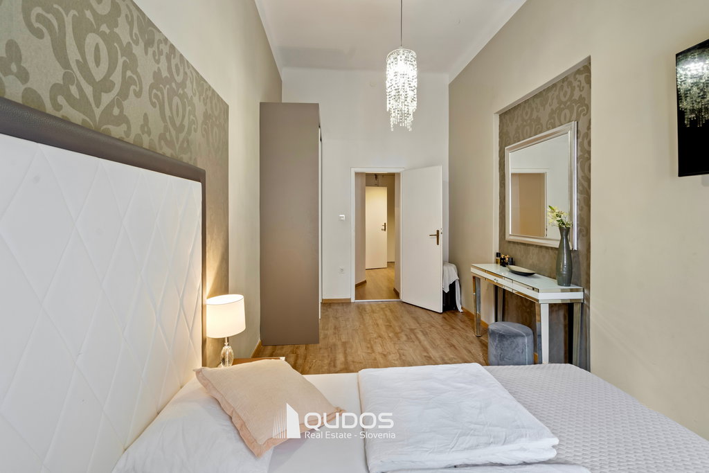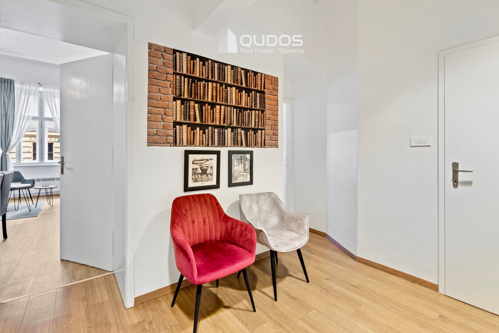 V starem delu mesta, na Gosposki ulici oddamo prostorno trisobno stanovanje z balkonom. Nahaja se v visokem pritličju čudovite secesijske stavbe in obsega prostorni predprostor, dnevni prostor, sobo z galerijo, kuhinjo s shrambo in z izhodom na balkon, spalnico in kopalnico. Prostori so svetli, z visokimi stropovi.