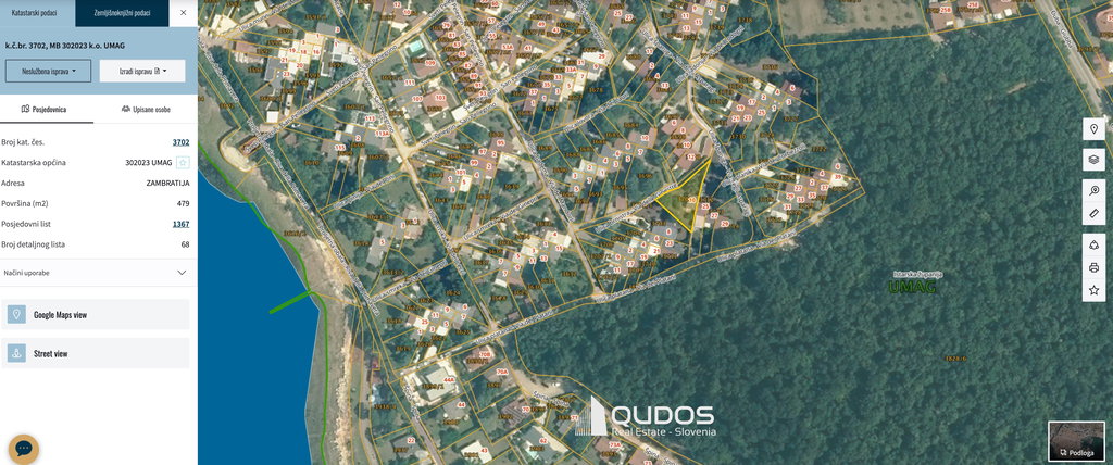 Parcela je končna, na njej stoji hiša iz leta 1966. Je trikotne oblike in je obdana z živo mejo.