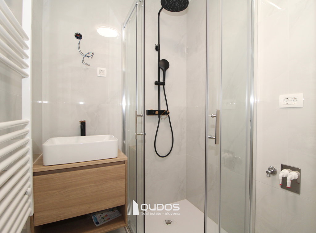 Celovita renovacija stanovanja je obsegala tudi zamenjavo vodovodnih in elektro inštalacij, novo stavbno pohištvo, povsem na novo je izdelana kopalnica, ločen wc, stene in podi. Na oknih so komarniki in rolete. Loža je zasteklena, jo je pa seveda z manjšim posegom možno spet "odpreti". Stanovanje je klimatizirano. Klasična shramba je v kletni etaži.