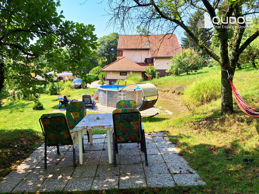 Hiša je obdana z zelo lepo urejenim in ograjenim vrtom, ki nudi veliko možnosti za sprostitev in preživljanje prostega časa na prostem. V poletnih vročih dneh pa ponuja ohladitev montažni bazen. Poleg hiše se nahaja še sadovnjak.